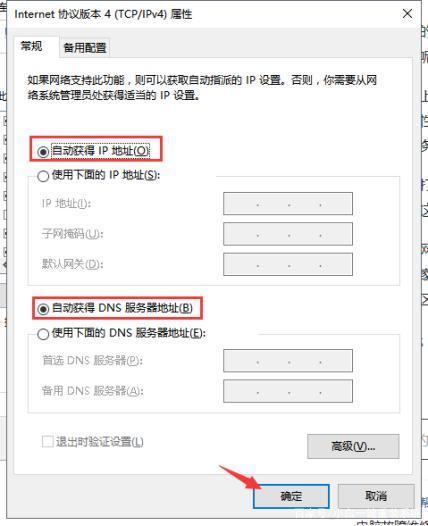 5、检查自动获取IP地址,自动获取DNS服务器地址,然后确认。
