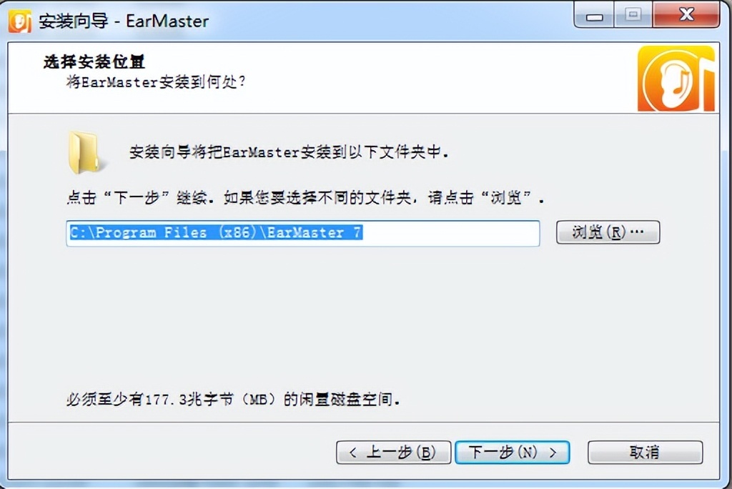 4、选择安装路径,默认路径为C:\Program Files (x86)\EarMaster 7,可点击下一步急需,如果用户要选择不同的文件夹,可点击浏览更换路径;