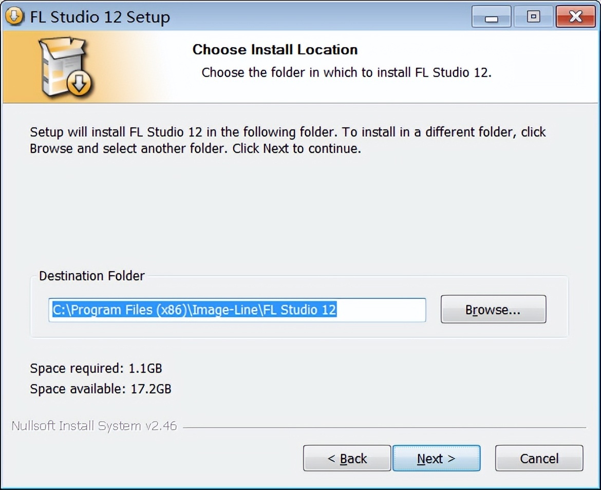 6、选择软件安装目录位置放置C:\Program Files (x86)\Image-Line\FL Studio 12.5.1,修改点击browse按钮,点击下一步