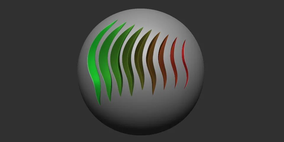 在最初只能插值笔划的整体形状,但Pixologic现在增加了对笔刷大小、Z强度和RGB强度的支持。这些变化使得生成宽度、深度和颜色逐渐变化的笔划阵列成为可能。