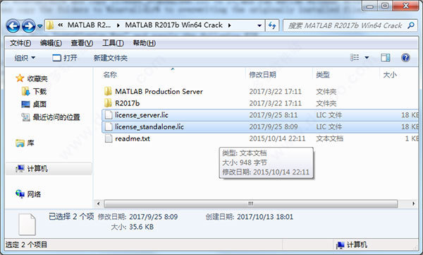 将:“license_server.lic”和“license_standalone.lic”复制到\MATLAB\R2017b\licenses\目录下