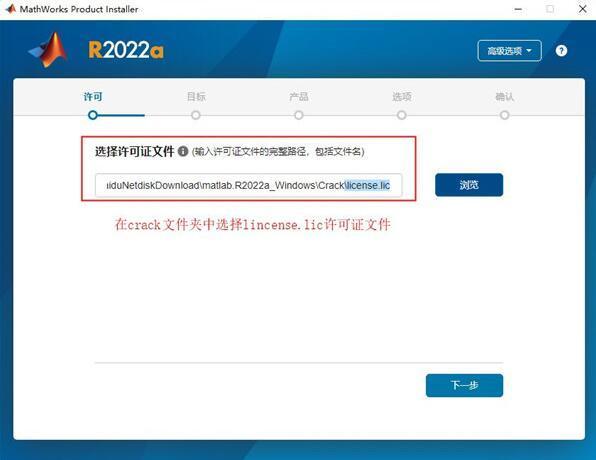 5、当被要求“选择许可文件”时,从crack文件夹中选择文件“license.lic”