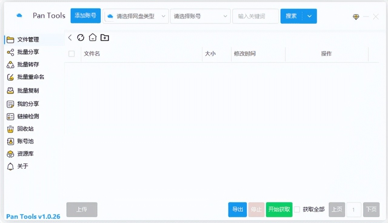 一款针对热门网盘的文件管理、批量分享、批量转存、批量修改重命名、批量检测链接、跨账号移动文件、多账号文件搜索等,支持不同网盘的不同账号的资源操作,各种资源导出,并支持资源探索功能,优质资源一键转存保存!并支持账号池切换,转存时,空间不足,自动切换到另一个账号,无需人员干涉!全自动多网盘批量转存、分享等!
