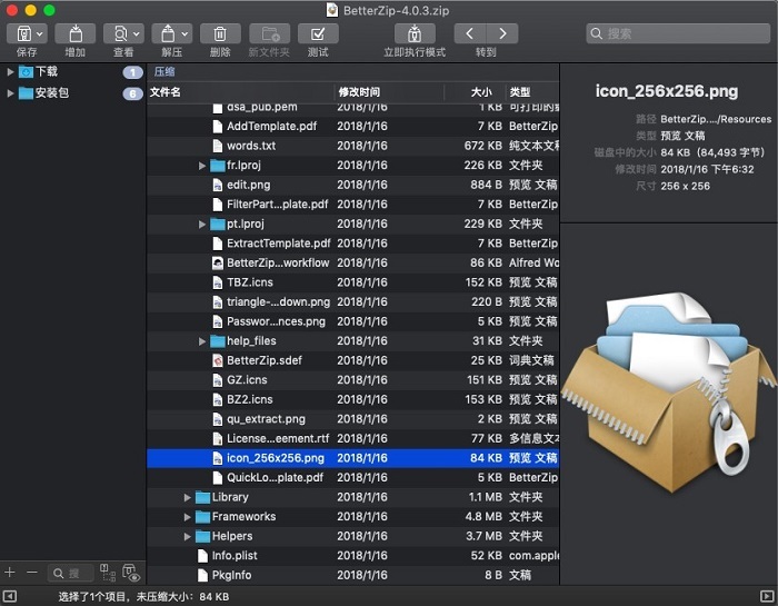 对于Mac用户而言,一款好的解压缩软件对我们来说非常必要,解压缩操作是我们日常使用电脑中最常用的操作了。BetterZip 是 Mac 平台上的一款非常优秀的的解压缩软件,不必解压就能快速地检查压缩文档。它能执行文件之间的合并并提供密码。使用它,用户可以更快捷的向压缩文件中添加和删除文件。它支持包括 zip、gz、bz、bz2、tar、tgz、tbz、rar、7-zip、cpio、 arj、lha、lhz、cab、iso、chm、rpm、deb、nsis、sit、dd、hqx 和 bin 等多种格式的文件。