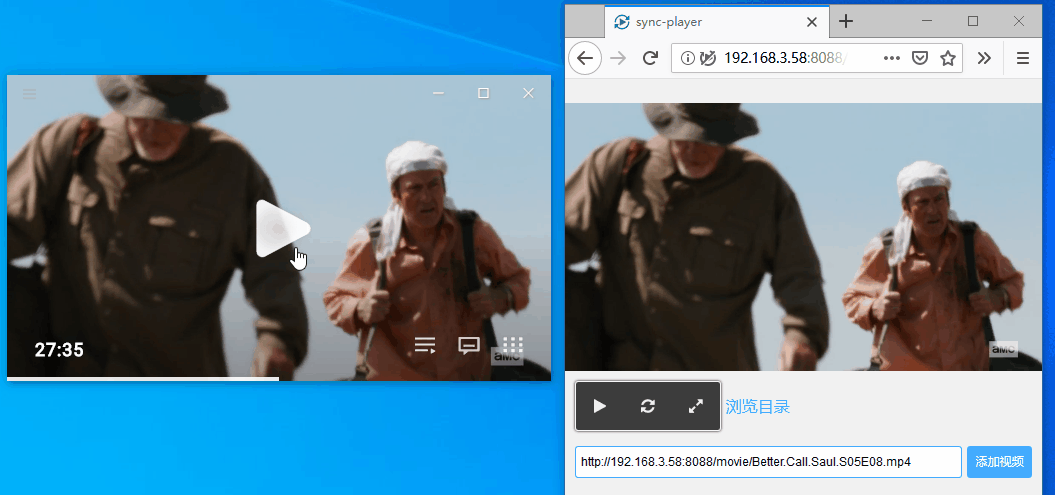 上面的「SyncPlay」软件虽然易用,不过需要双方都有一部影片,对一些小伙伴来说可能比较麻烦,所以有大佬制作了使用 Websocket 实现影片在线异地同步看视频的播放器,拥有 Web 版和基于 射手影音 DIY 的客户端版本,还可以外挂字幕。