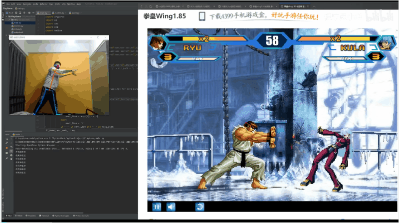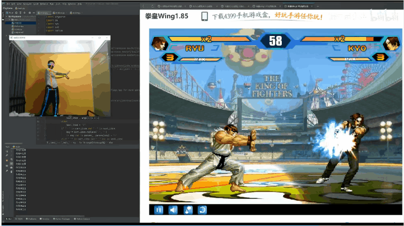 如果你觉得上面的 FC《马戏团》太简单了,在 B 站还有另外一位大佬制作了拳皇真人模拟器,利用体感来玩拳皇游戏,想必大家也是对拳皇很熟悉了吧,同样利用了摄像头来实现体感操作,这样的玩法简直是我小时候的梦想。下面给大家演示的是 4399 里面的《拳皇Wing》版本。