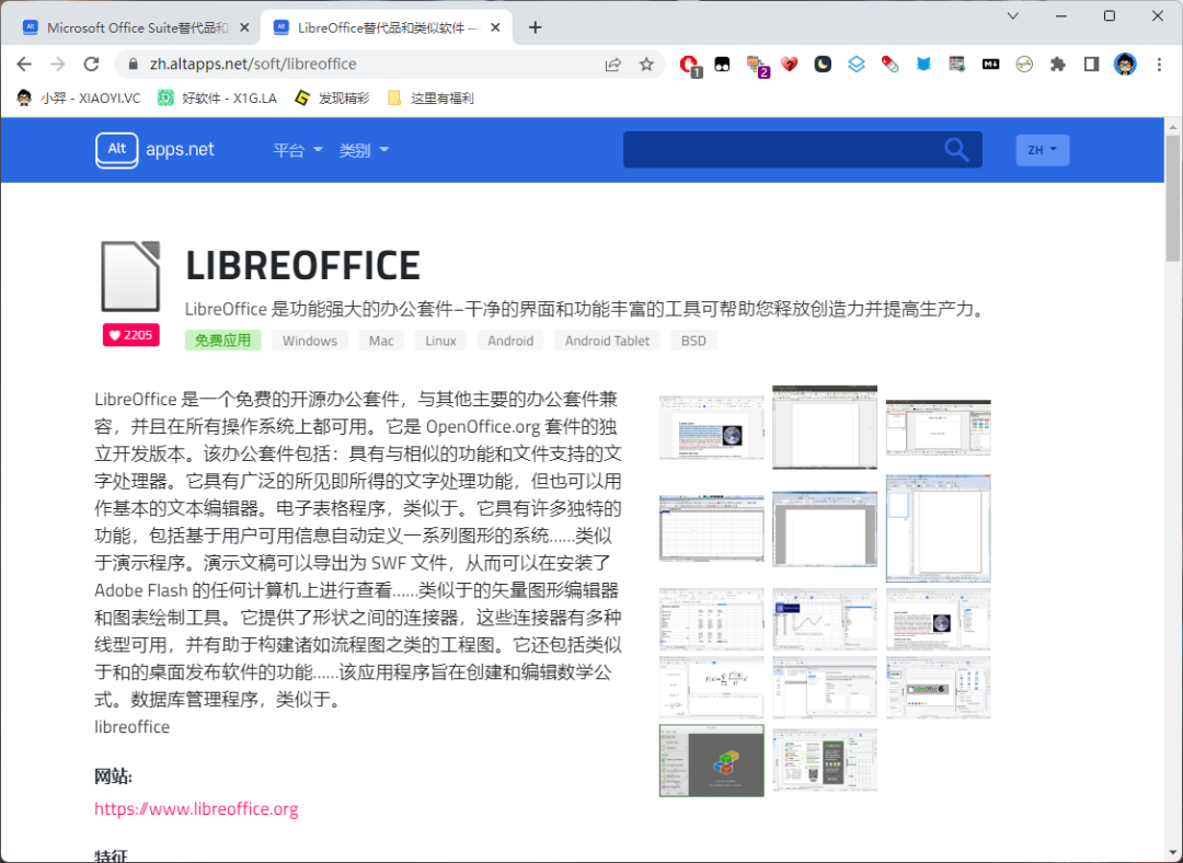 例如需要寻找微软 Ofiice 的免费代替品,你只需要搜索 Microsoft Office 关键词,后在列表下面会显示相关的代替品了,会标识是否免费、免费增值应用等信息。