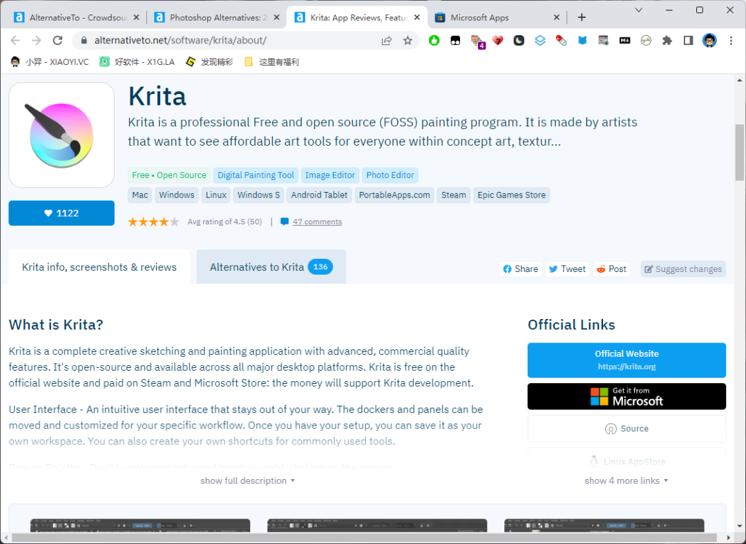 软件除了详细的介绍和截图外,还有提供官方地址、开源项目地址、如果有上架到微软商店也会提供地址。