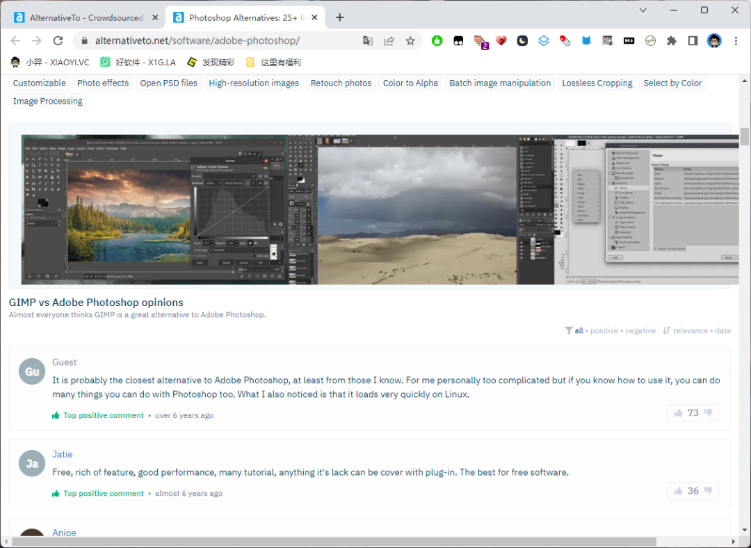 搜索软件后,同样会出现推荐的代替品列表,对比「Altapps」网站,它还支持显示每个软件的用户评论内容,所以是“软件版的大众点评”?这样可以让你更好的选择代替品。不过同样评论内容都是英文的,看不懂的可以翻译下。