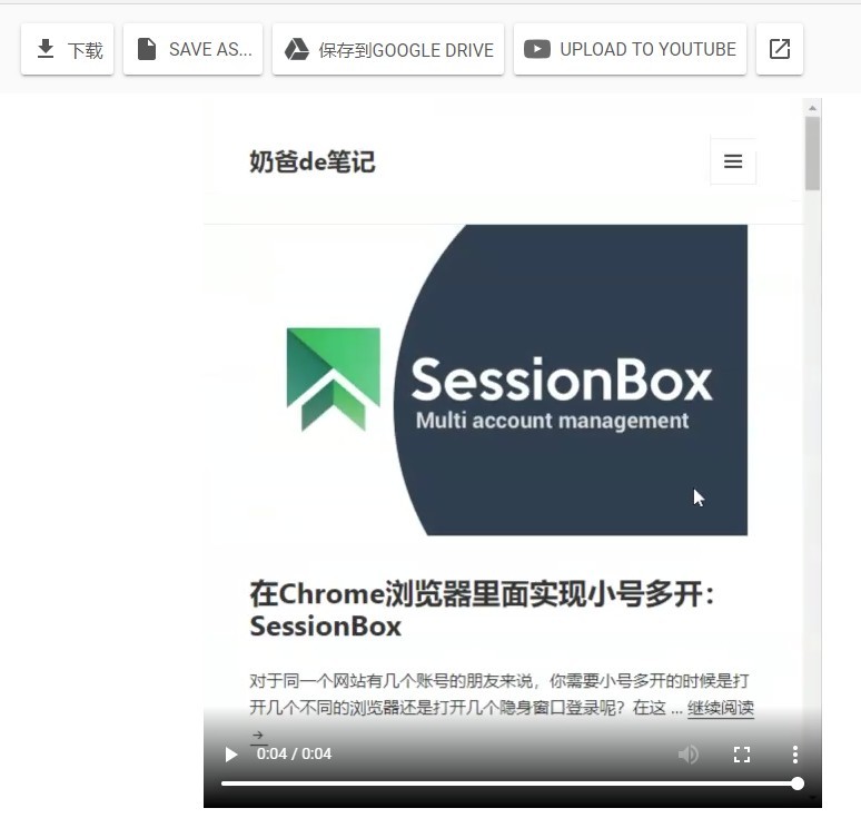 录制后的视频文件可以直接下载保存或者上传到国内访问不上去的网站。