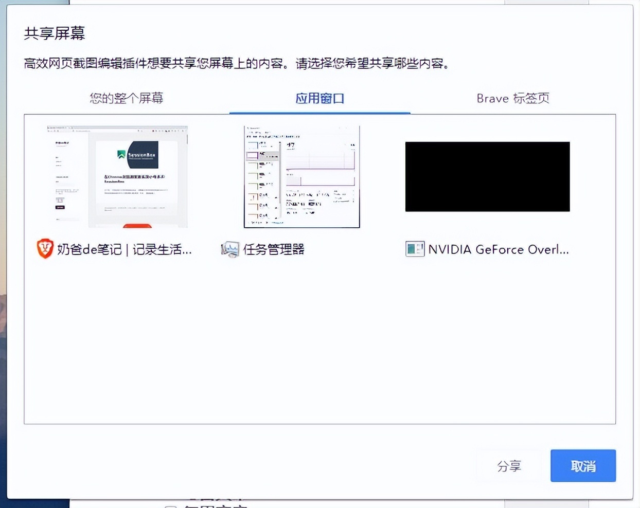 高效网页截图编辑插件最骚之处奶爸认为应该是在这个屏幕录制视频功能上了,点击录制后会提示选择整个屏应用窗口,或者你浏览器打开的标签页。