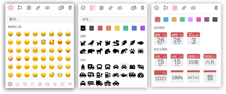 wolai 的页面图标内容十分丰富,除了 Emoji 之外,还可以添加 Font Awesome 图标,并且支持八种自定义颜色,并且在正文中也是可以自由插入使用的。当然,如果没有合适的,你也可以手动上传图标或者使用外链。