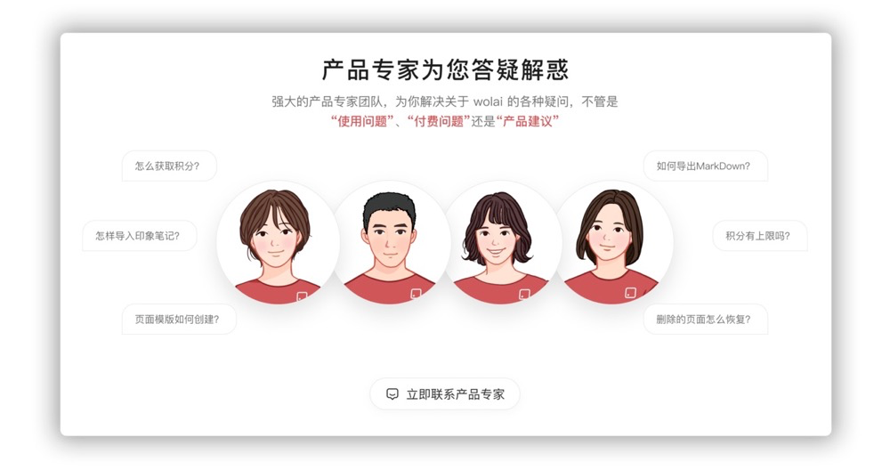 不论在wolai界面,还是他们的微信群、公众号上……只要有问题,基本上可以做到几秒内得到回复。wolai虽然上线时间不长,但是他们对待用户的态度确实很真诚,经常是用户提出一个需求,wolai评估通过之后,当天就能上线,反馈的一些bug,当天也都能解决。