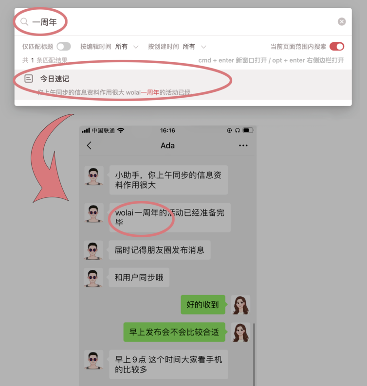 wolai的搜索功能也算是比较强大的了。你可以根据自己的需求进行选择和限制。