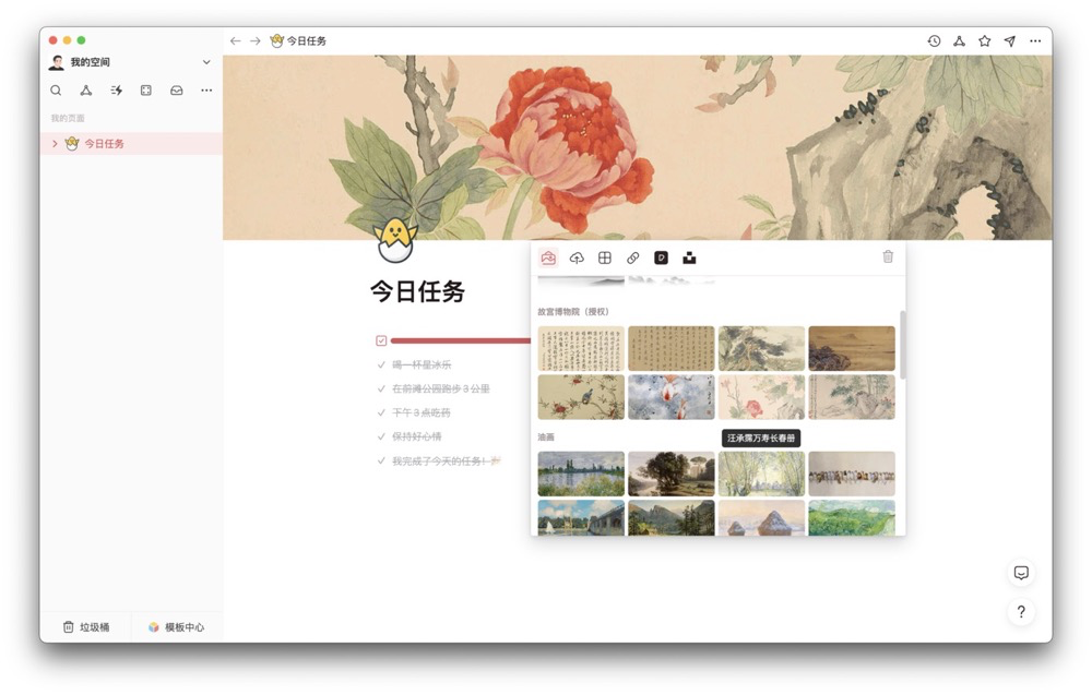 为了将传统文化瑰宝融入 wolai ,wolai与故宫博物院取得联系,并获得文物图片的使用授权。只有在 wolai ,我和你才能….使用故宫文物作为页面题头图。