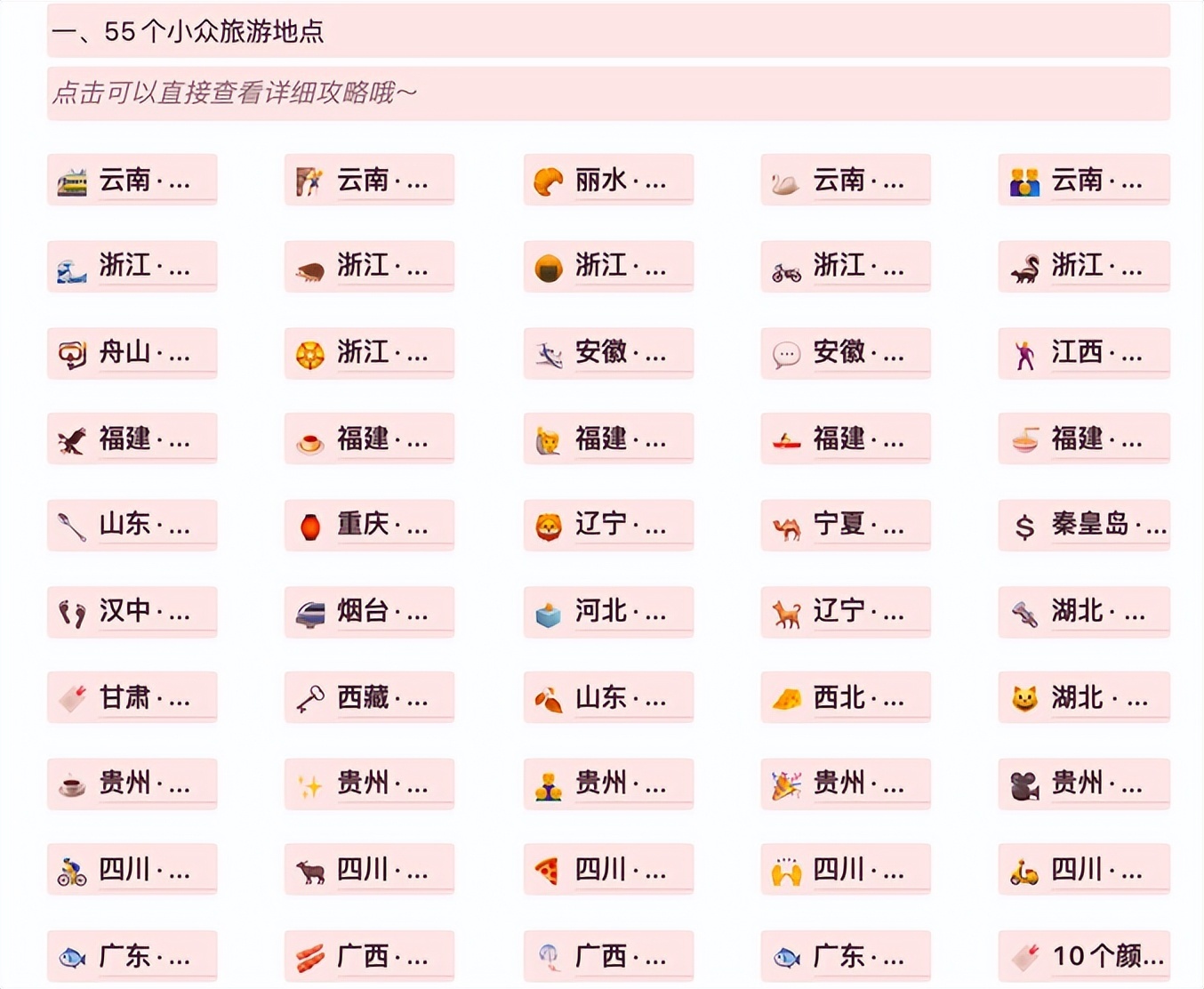 下图的每一个地名,背后都是一个子页面。页面可以和文字,图片并存在一个父页面下,是不是很神奇?