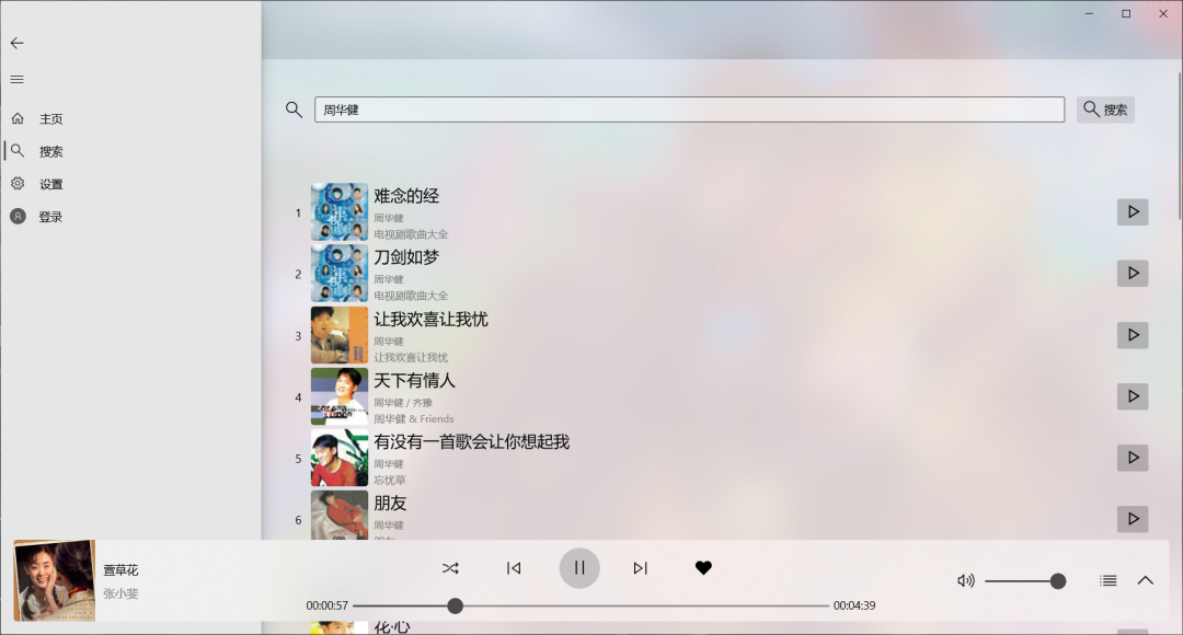 实测「HyPlayer」启动速度超快,并且采用了 Fluent Design 设计风格,支持磨砂半透明效果,加上简洁的界面,非常好看。