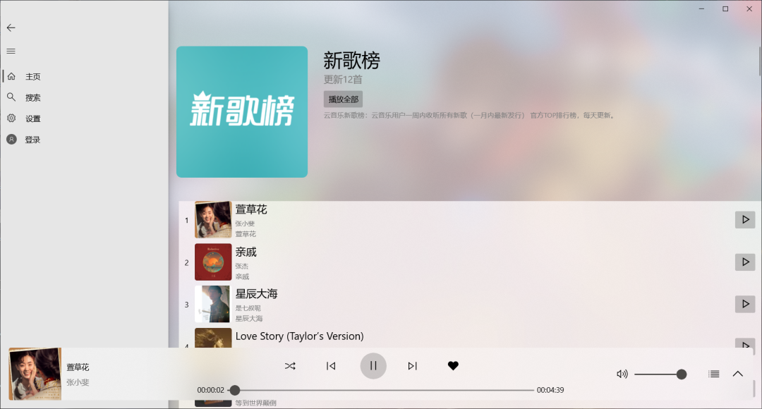 目前「HyPlayer」只有网易云音乐的排行榜歌单,没有其它用户创建的歌单推荐,也没有歌曲的分类。