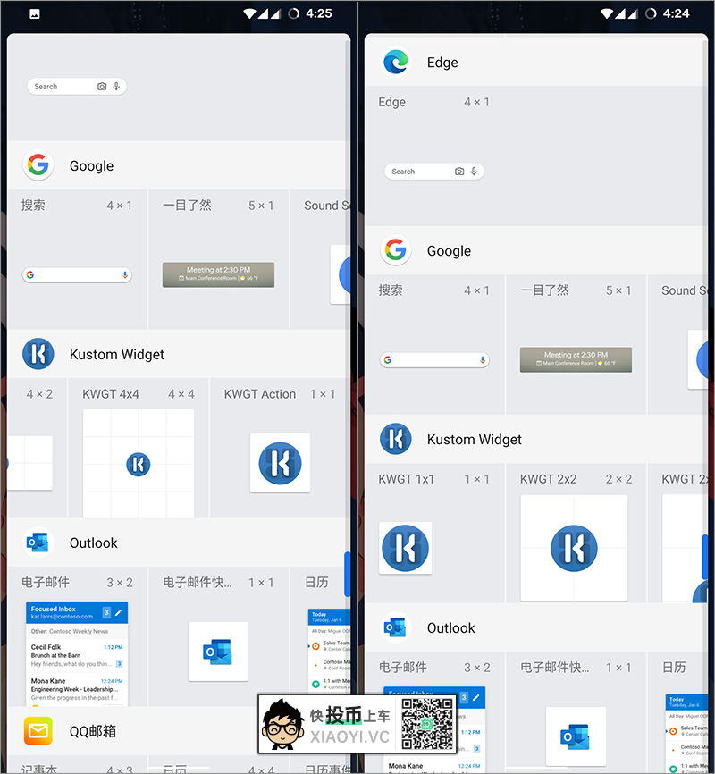 安装好「KWGT」后,在桌面长按添加小部件,就可以看到「KWGT」提供的多种不同尺寸的部件,根据你屏幕的布局来选择。如果窗口小部件的大小不正确,请使用「KWGT」选项中的缩放比例正确应用大小。