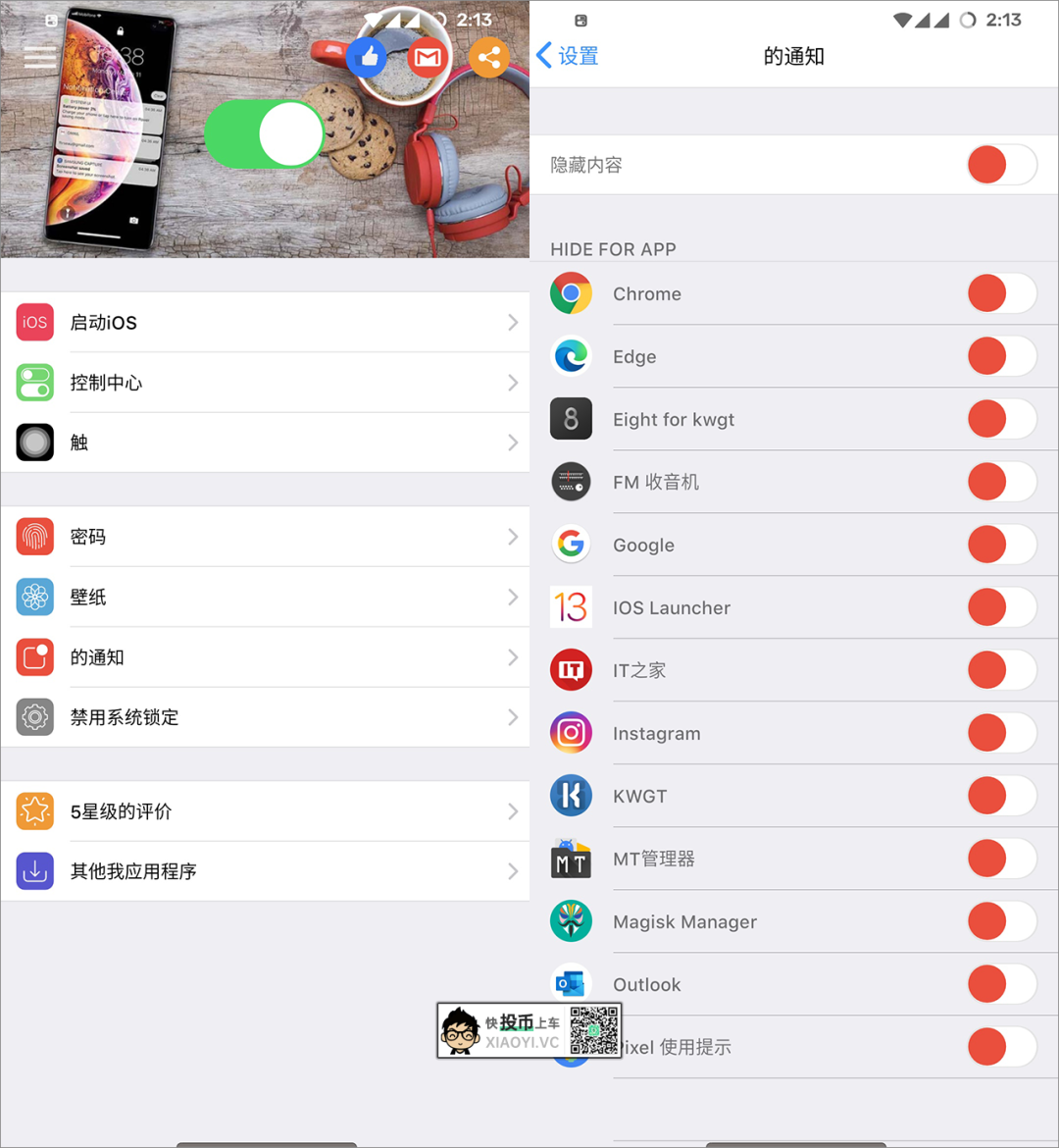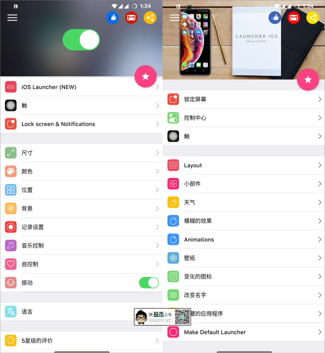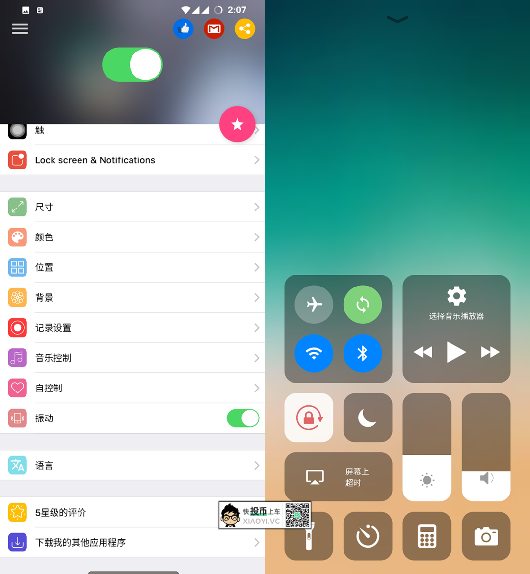 对咯,还有另外一款模仿 iOS 界面的APP「X桌面」功能设置上没有「Control Center iOS 14」丰富,但是效果也挺不错,有兴趣的都可以试试看。