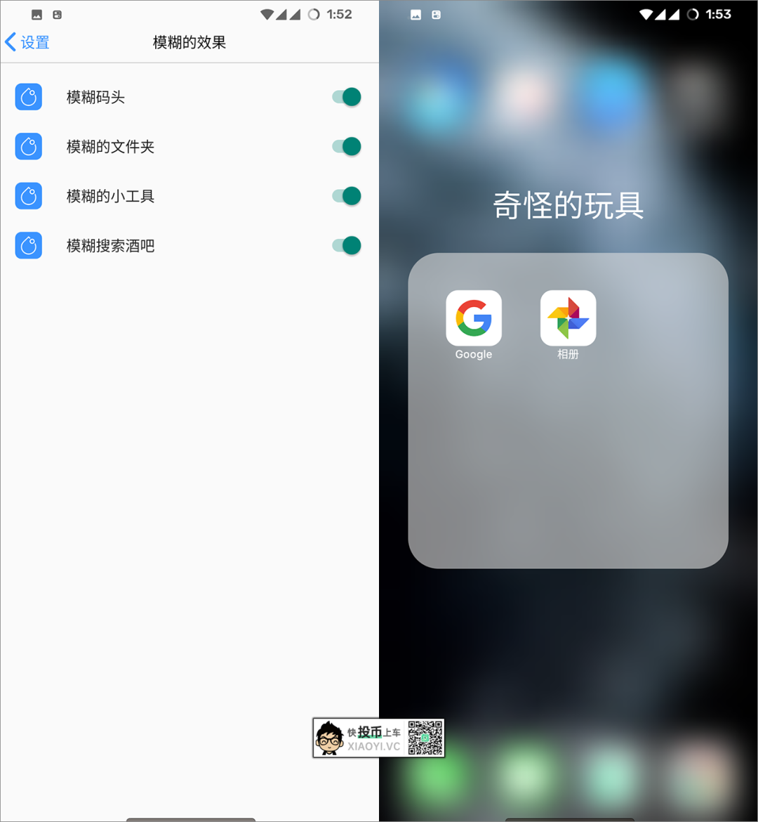 动画特效:动画效果方面支持使用 iOS 的解锁屏幕动画、关闭/开启APP的动画、返回桌面壁纸的动画,以及内置了一些 iOS 的壁纸。实际体验上动画偶尔会掉帧,也有可能我这机子配置太低的原因。