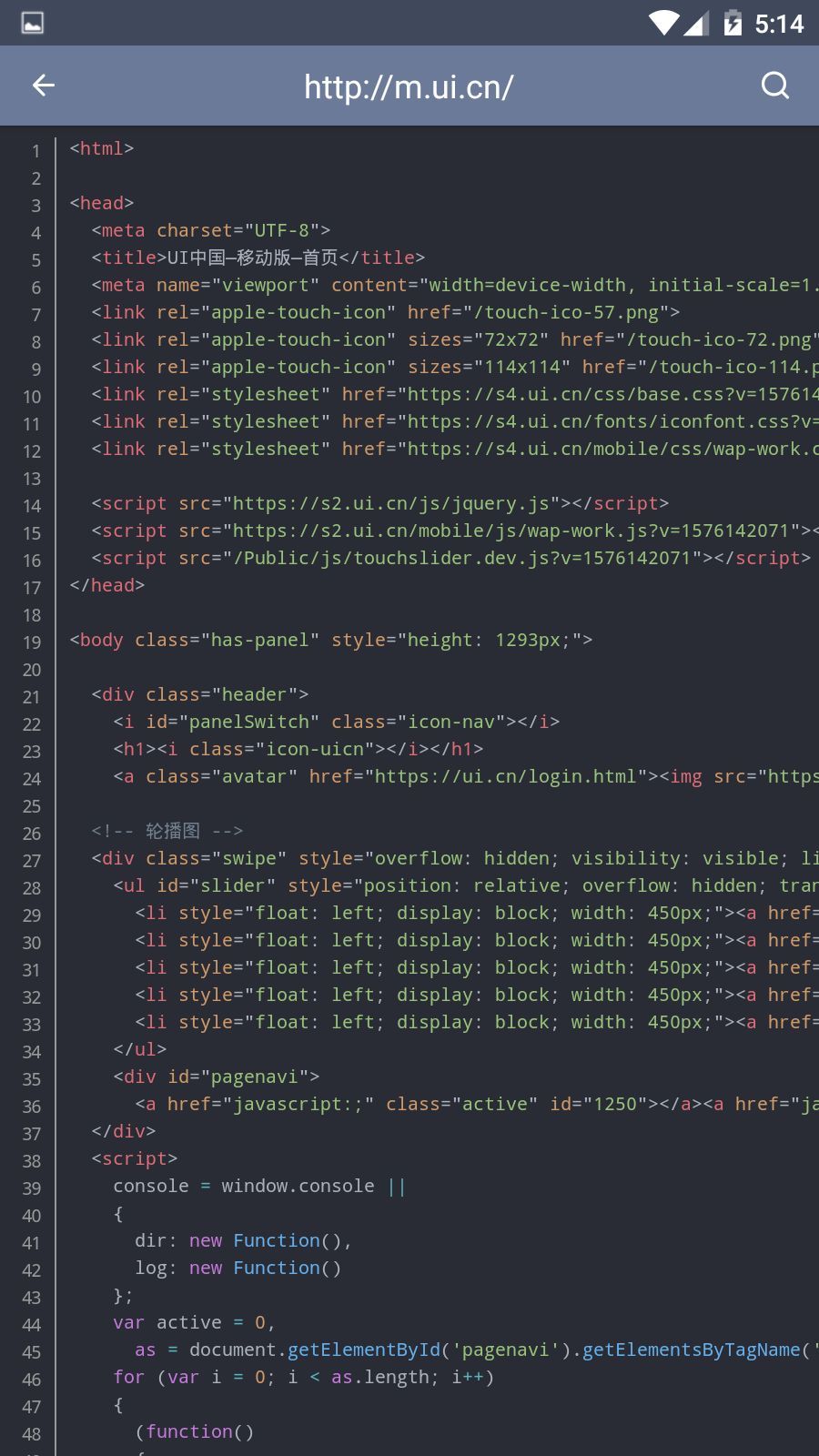 查看源码:前端码农必备功能,方便手机上借鉴参考页面源码,支持代码高亮。