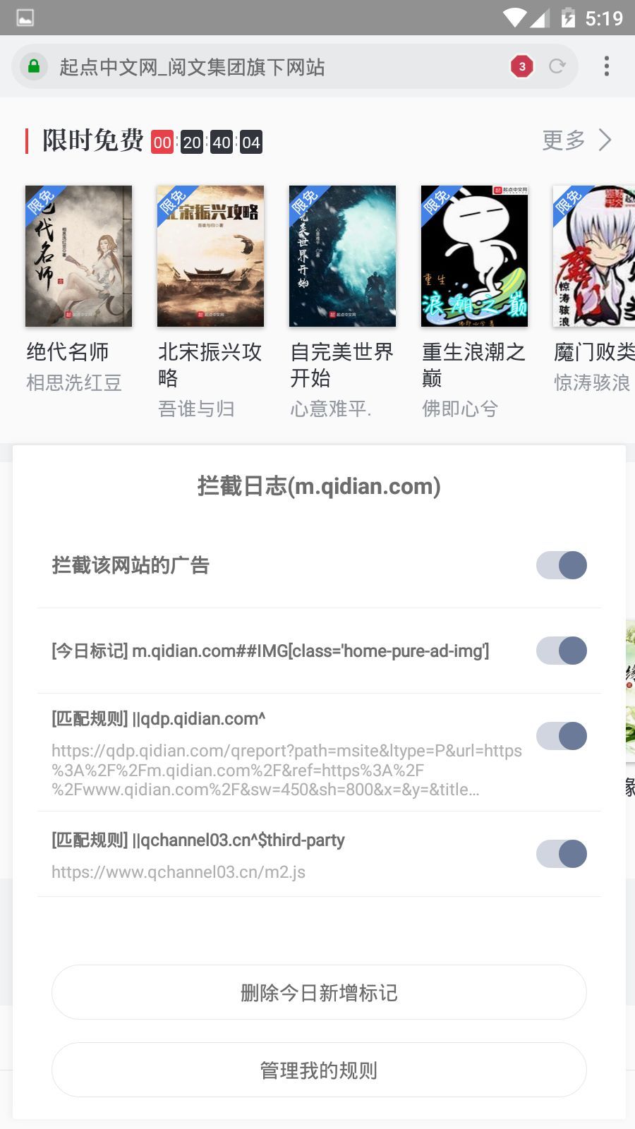 广告标记:过滤规则不够强大,我们可以手动标记需要去除的广告,然后就会自动添加规则里面了。