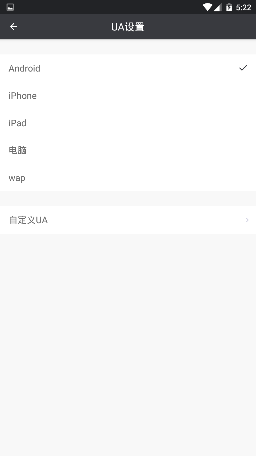 UA设置:可以模拟安卓、iPhone、iPad、电脑、Wap 模式,也可以自定义。