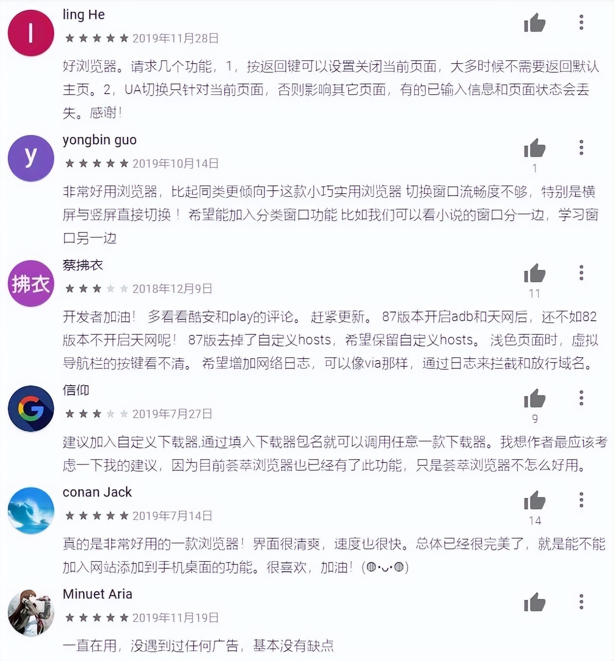 「神奇浏览器」在Google Play、基佬安都获得非常好的评价。