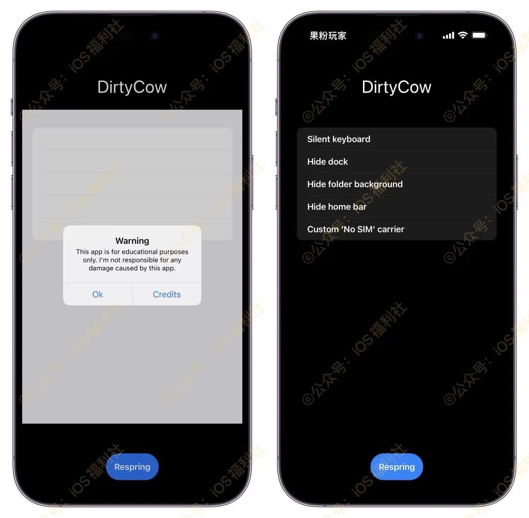- dirtycow有个小BUG,就是在浅色模式下是不能正常显示的,需要切换至深色模式才可以。