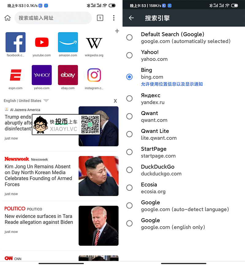 「Kiwi」界面和移动版的「Chrome」基本一样,如果你没有404工具,需要手动修改下默认的搜索引擎,可以改成微软Bing或者其它。