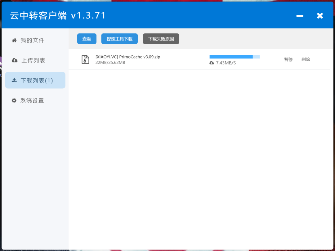 上传速度方面,基本可以达到带宽的满速。如果「云中转」服务器里面已经有同样的文件存在,那么就可以秒传完成。