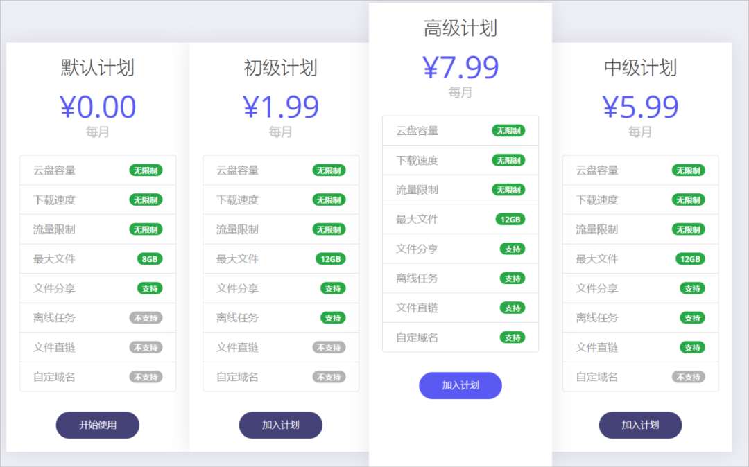 如果觉得免费的服务满足不了你,也可以付费获取会员计划,包括三个级别,具体功能看下图。说真,这个价格不贵,还有免费版,一般用户也够用了。