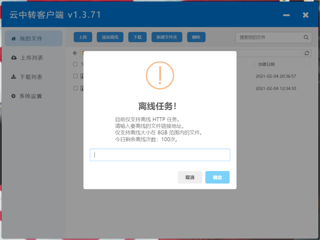 离线下载任务目前只支持 HTTP 协议下载,不知道以后会不会支持其它协议。迅雷的离线下载协议就比较强大,基本全能。另外离线文件大小限制在 8GB,每天有限制离线下载的次数为 100 次。