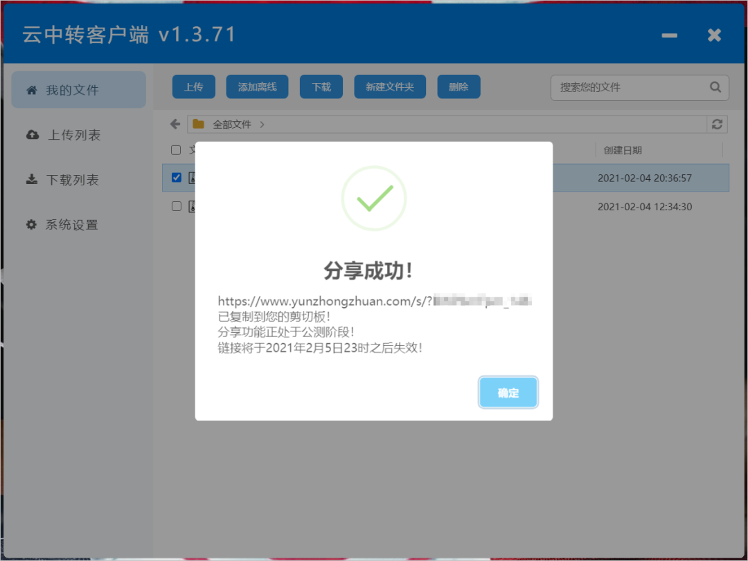 你也可以生成分享的方式共享文件,文件有效期只有1天左右,适合临时分享,暂不支持设置提取码。