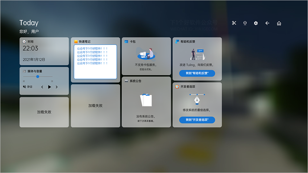 整个系统界面UI设计还是蛮精致的,更重要的是,所有图标都是可以点击,并且有实际功能。