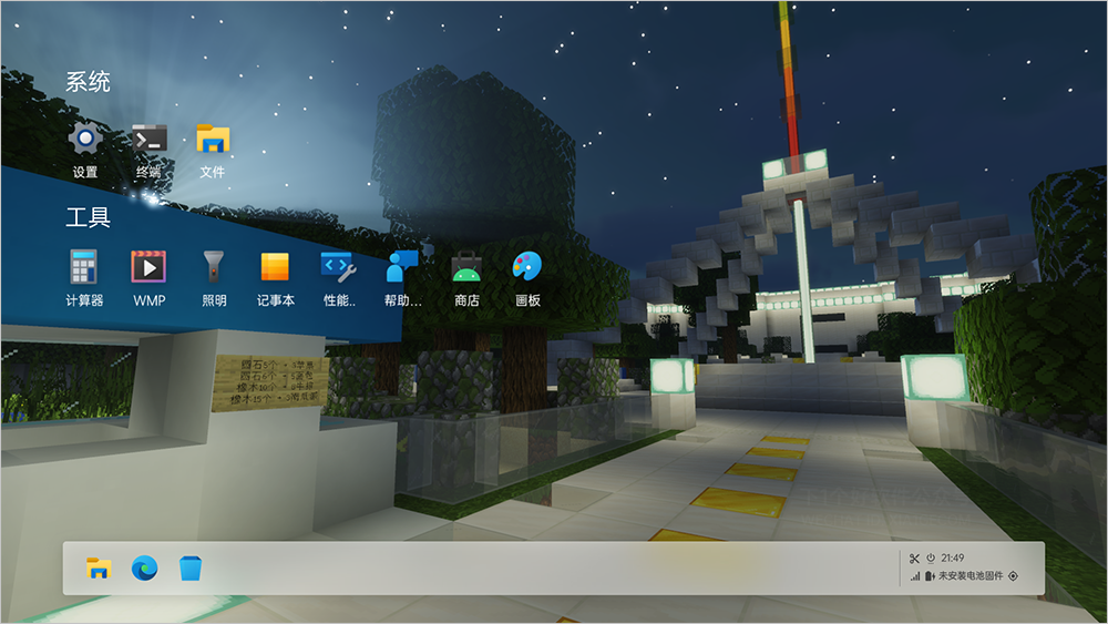 当鼠标移动到屏幕左边,会出现一个”负一屏” 有点类似于现在安卓手机流行的负一屏界面,可以在里面快速记笔记,查看时间、控制媒体等等。
