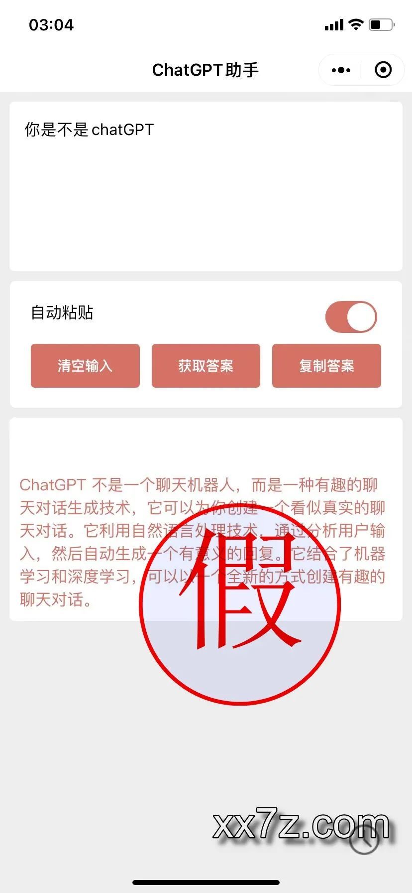 都是山寨货,骗人的,挂羊头卖狗肉的,要么是普通的聊天机器人,要么是GPT-3(也是OpenAI开发的,可以说是chatGPT的前生吧),要么是引流卖课,割韭菜,当然也有真正用chatGPT接口的,不过两下就被玩崩了,想用chatGPT,唯有魔法去官网注册使用。如何辨别真伪呢?也很简单,直接问机器人,你是不是chatGPT就行了。