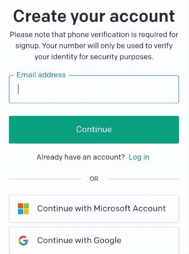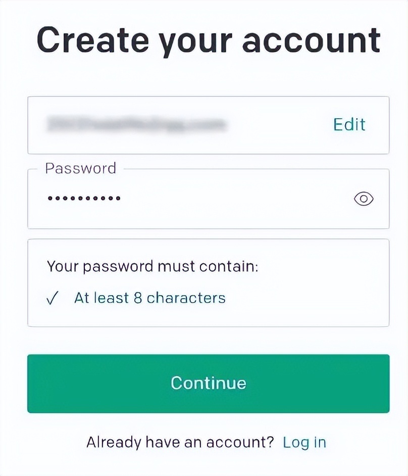 可以使用微软账号或谷歌账号登录,或者输入邮箱地址和设置密码,点击“Continue”。