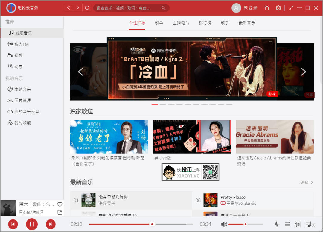 而今天再给大家推荐另外一款利用「网抑云」接口制作的第三方播放器「思约云音乐」界面和「网抑云」基本一模一样,简直就是”亲兄弟”。