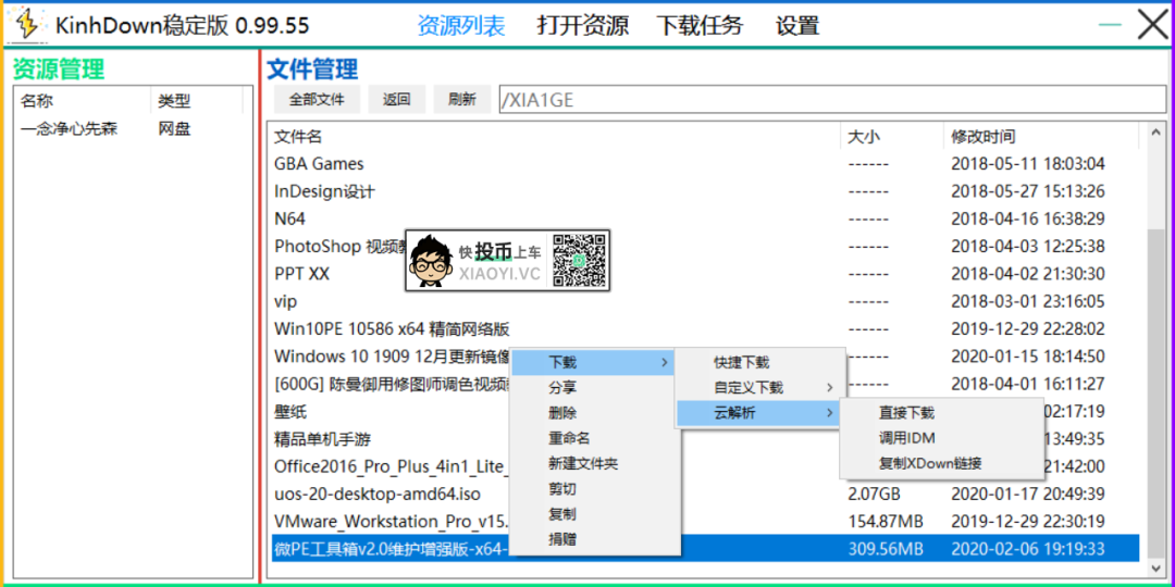 这款「KinhDown」是基于「Aria2c」开发的下载工具,支持了双平台Windows/安卓,支持Cookies方式登陆、可以扫码登录多个网盘账号下载文件。