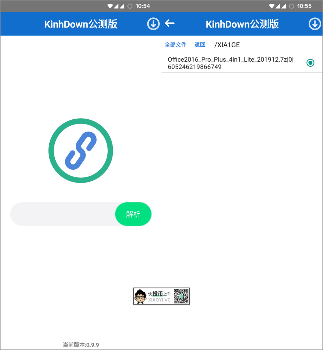 安卓版:目前「KinhDown」的安卓版还只是公测版,不能登陆你的「度盘」账号,只能通过分享连接下载文件,而且容易下载失败,速度上也不快,只能等作者更新了。
