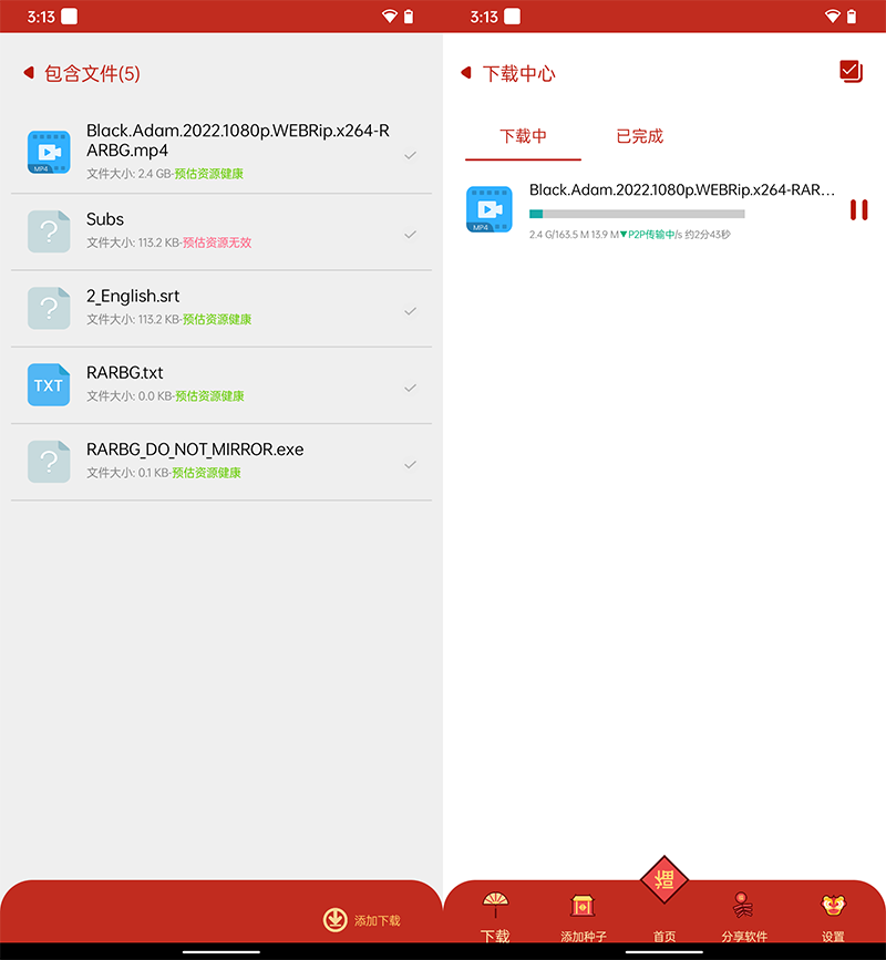 下载的时候会分析资源的健康度,避免你下载到无效资源。下载速度方面,显示有 P2P 传输中,暂不清楚是否有服务器加速下载,反正下载速度还是挺快的。