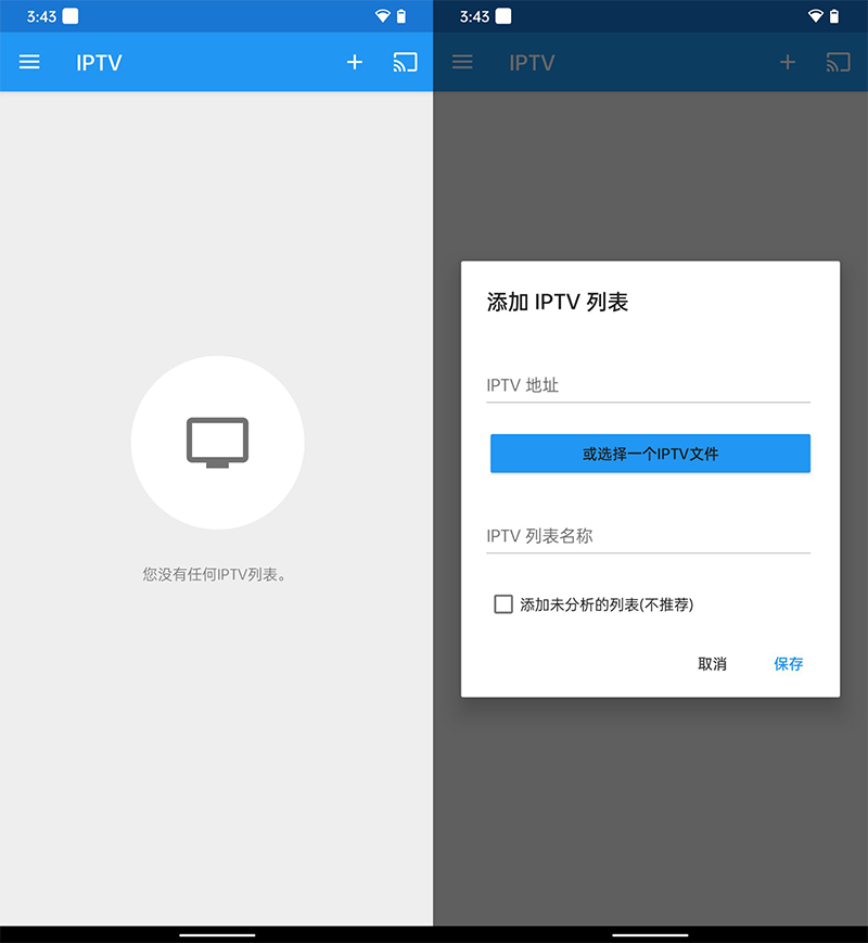 如果你需要 IPTV 直播,那么也支持导入 m3u 直播文件,然后把直播投屏到电视上观看。