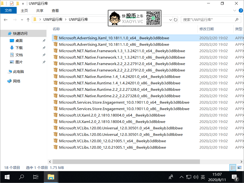 2.这时候 “Microsoft Store” 还不能使用的,还需要安装支持库,把下载的 “UWP运行库” 解压,打开文件夹把里面的全部 APPX 程序都安装一遍(全部都装哦,不可漏装)。