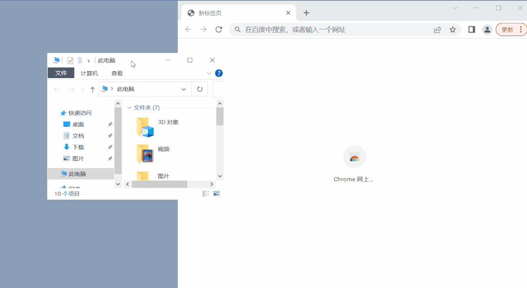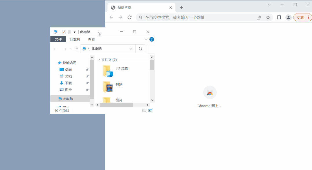 仅触摸板:拖放到屏幕边缘。请关闭 Windows 自带的贴靠窗口使用;