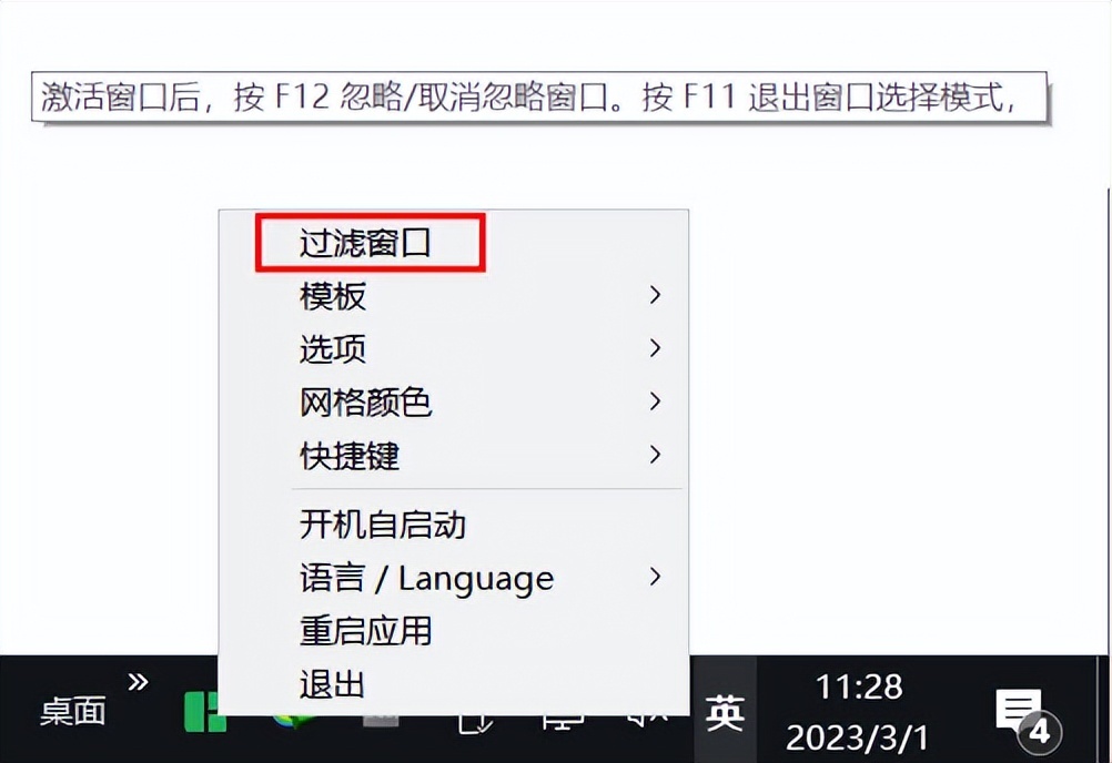 在全屏游戏或者与软件有冲突的时候,可以过滤掉窗口,右键GridMove的功能图标,根据提示操作即可。