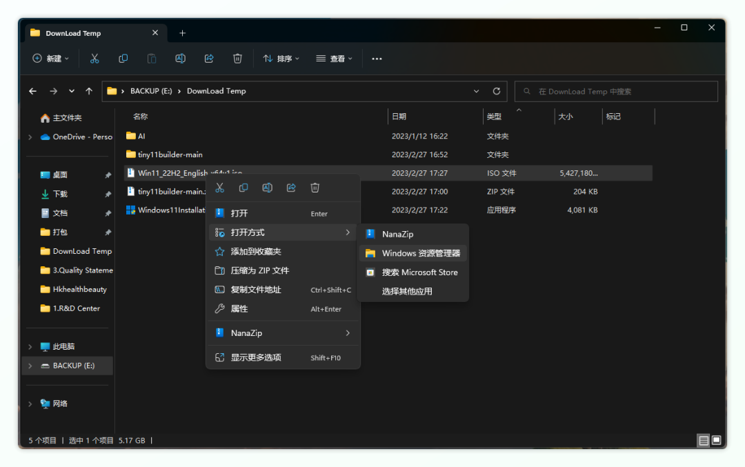 4.把下载好的 Win11 系统镜像挂载 (右键用资源管理器打开);