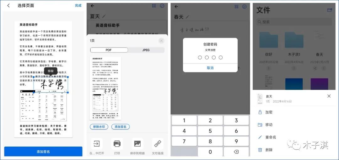 它支持对生成的 PDF 文件进一步编辑,包括:添加图片、加密、添加签名、重命名等。