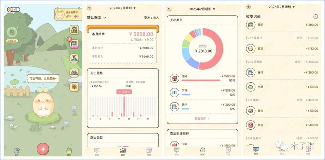 它免费好用,画风可爱,将记账与宠物养成相结合,每笔记账,可以让宠物茶茶得到成长,还可以获得一些奖励。